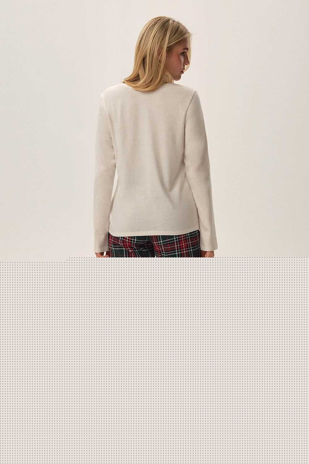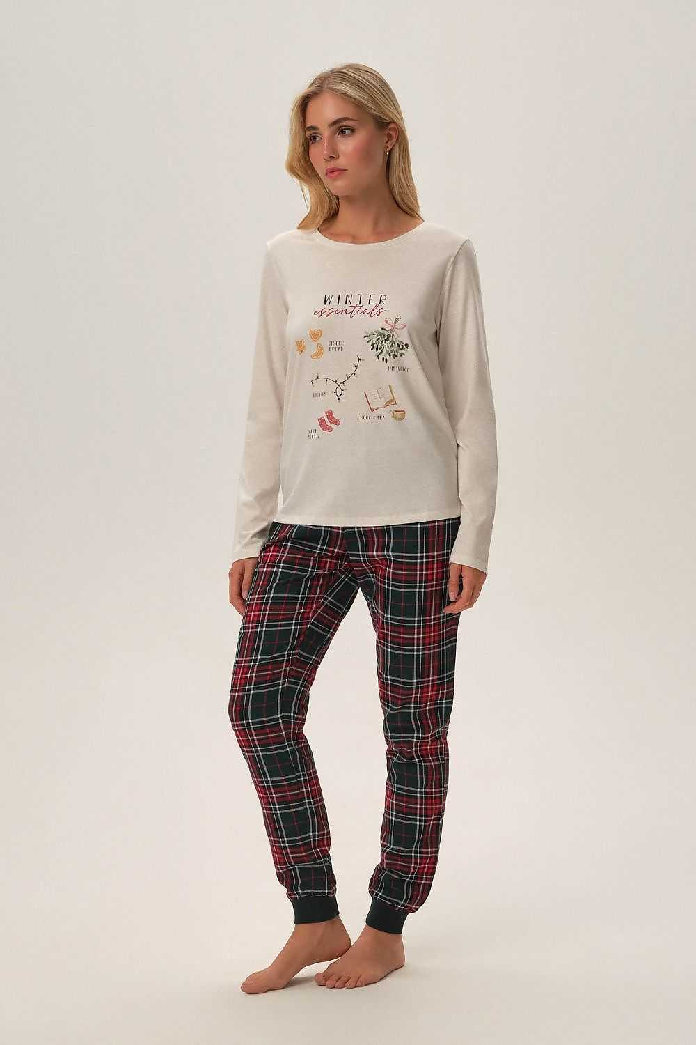 How to get yourself and the household into a delicious Advent mood? The warm Florencia Christmas pajamas are a timeless classic that you will be happy to pull out of your closet every year. The comfortable fit goes hand in hand with a modern design and fashionable color contrast. On the beige top you'll find a graphic depicting winter essentials, while the checkered pants add a note of elegance.