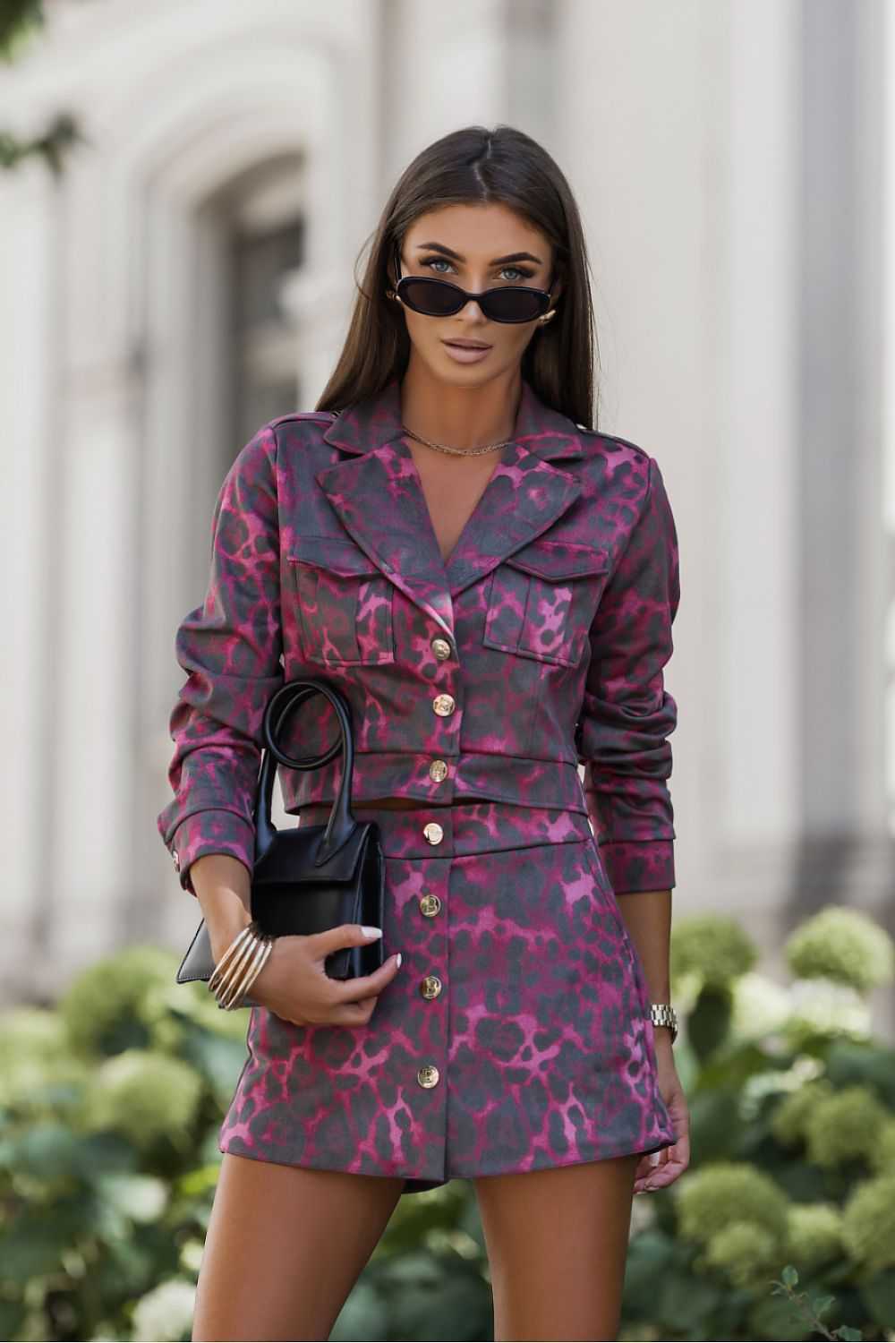 We offer a complete BLISS Bronze set, which combines elegance and comfort. This stylish set consists of a jacket and skirt-shorts, which will work perfectly both for everyday wear and for more formal occasions. Designed with demanding customers in mind, this product has been designed to accentuate the silhouette's assets and provide comfort when worn. The jacket is characterized by a perfectly tailored cut, making it look extremely stylish. Available in three sizes, it ensures comfort and freedom of movement. The specially chosen length and width in the bust make it easy for every woman to find the perfect model for herself. The skirt-shorts are a perfect addition to any outfit. Their cut provides comfort and freedom of movement, as well as a unique look. Made of high-quality materials, 95% viscose and 5% elastane, the BLISS Bronze set guarantees durability and comfort throughout the day. Don't wait and enrich your wardrobe with this unique set, which will surely delight you and everyone around you!