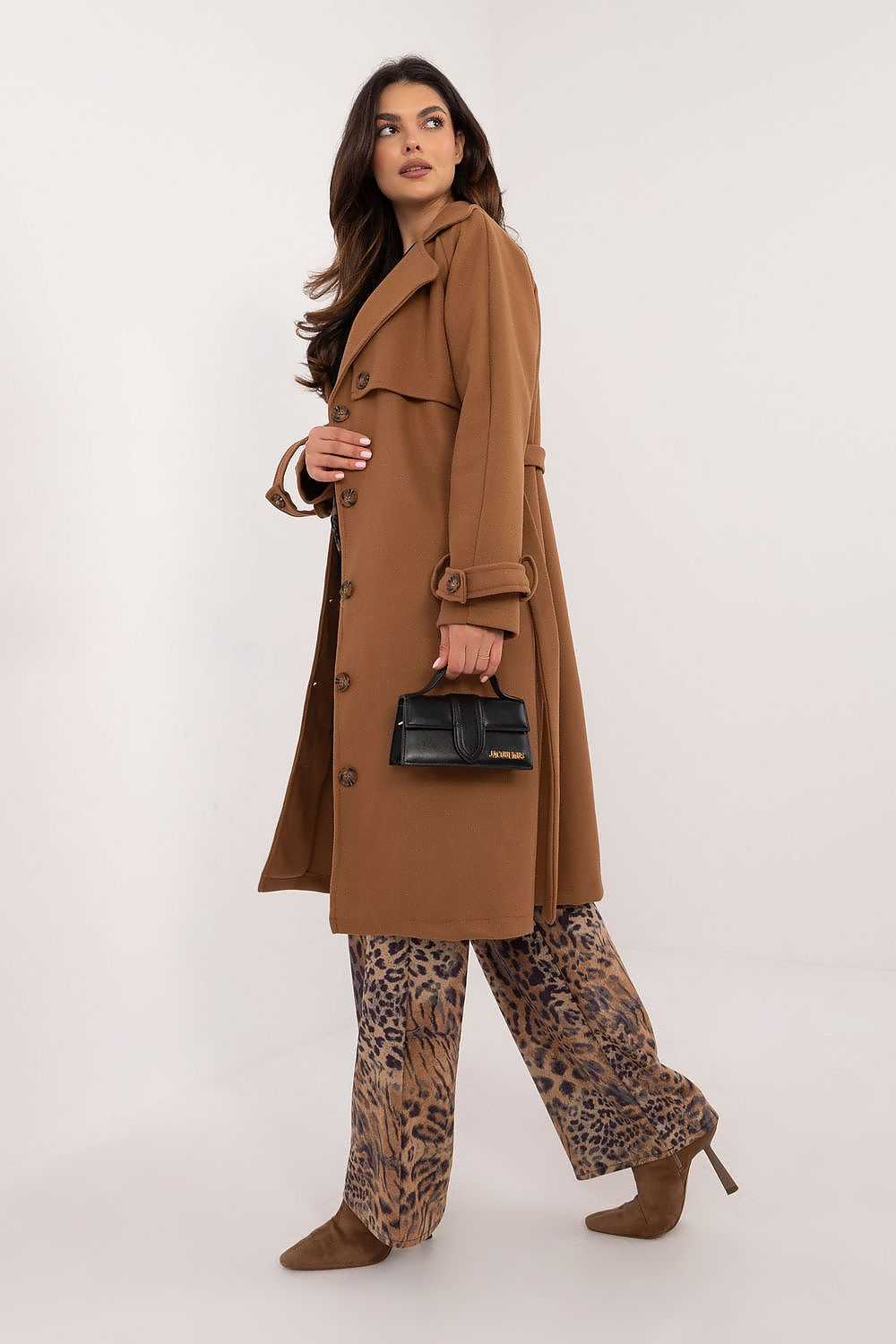 This timeless trench is a must-have in every woman's closet. Made of high-quality polyester, it is durable and resistant to changing weather conditions. The simple, elegant cut behind the knee makes the coat suitable for many outfits. Long sleeves and button closure ensure comfort and warmth. Practical slip pockets on the sides will accommodate essentials. The attached belt allows you to emphasize the waist and adjust the coat to your figure. This trench is an investment in your closet. Its timeless design and practical solutions will make you feel comfortable and stylish in any situation.