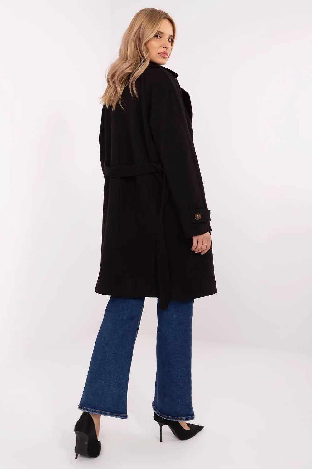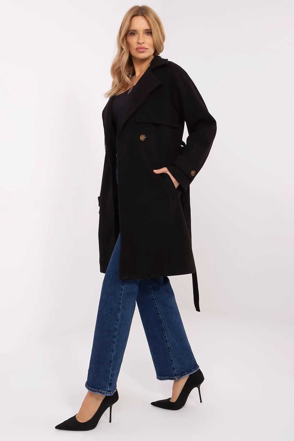 Casual women's coat, perfect for everyday wear and work. Made of high-quality polyester, it is lightweight yet durable. The knee-length coat is perfect for transitional periods, in autumn, winter, and spring. The unlined model without insulation provides comfort on colder days. Double-breasted button closure and a waist tie allow for a customized and flattering fit. Subtle stripes on the material add a modern touch. The coat is equipped with slip pockets for added functionality. An ideal choice for daily styling, combining elegance with comfort.