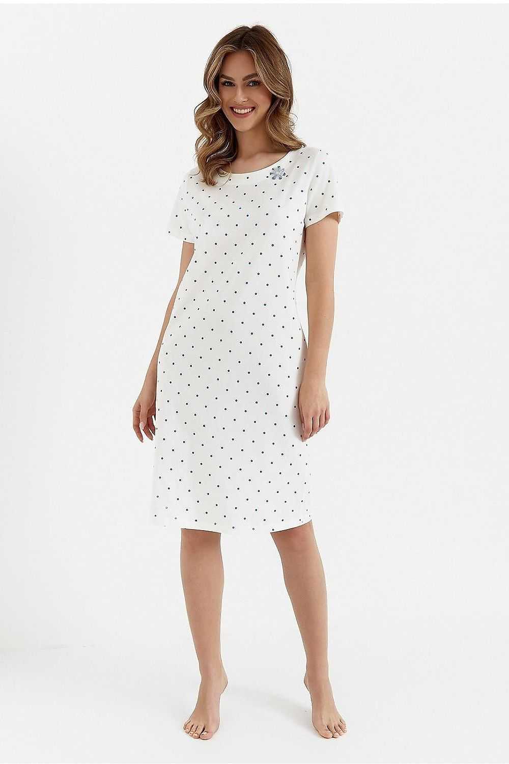Women's short-sleeved nightshirt is a comfortable and practical everyday choice. Made of lightweight material with a cute print, it provides comfort and breathability. The round neckline, loose fit, and knee-length ensure freedom of movement and comfort during sleep. The whole thing is packed in a plastic bag, making it a great gift option as well.