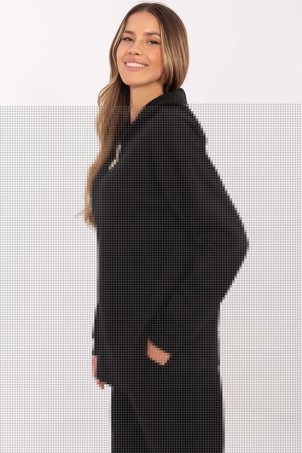 Diese modische Bluse ist ein Vorschlag für Frauen, die Wert auf Komfort und einen universellen Stil legen. Sie besteht aus einer weichen und angenehm anzufassenden Mischung aus Polyester, Elasthan und Viskose und ist angenehm zu tragen und fällt gut. Die Bluse besticht durch originelle Schlitze an den Seiten und am Saum, die ihr Leichtigkeit und Charakter verleihen. Sie ist die ideale Wahl für Frauen, die gerne auffallen und originelle Details schätzen. Die Standardlänge der Bluse macht sie zu vielen Styles, sowohl lässig als auch sportlich. Die Kapuze verleiht der Bluse Charakter und schützt vor Kälte. Die langen Ärmel sind perfekt für kühlere Tage. Die abnehmbaren Broschen ermöglichen eine individuelle Gestaltung und verleihen der Bluse einen einzigartigen Charakter. Sie können die Knöpfe nach Belieben öffnen und schließen und so verschiedene Stylings kreieren. Diese Bluse ist ein Must-have in der Garderobe jeder Frau, die Wert auf Komfort und einen modischen Look legt. Ihr universeller Schnitt und die originellen Details machen sie zu einer vielseitigen Kombination.